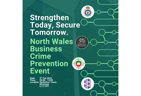 Ymunwch â ni ar y 5ed o Chwefror 2026 ar gyfer Digwyddiad Atal Troseddau Busnes wedi'i ariannu'n llawn ac felly’n rhad ac am ddim a gyflwynir mewn partneriaeth gan Heddlu Gogledd Cymru, Swyddfa Comisiynydd Heddlu a Throseddu Gogledd Cymru, Canolfan Seibergadernid Cymru, a Llywodraeth Cymru.
